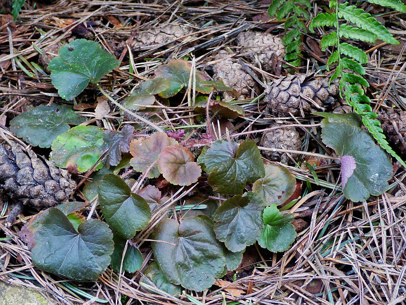 Heuchera cylindrica var. glabella... ogólnie podobna do gatunku, różnica tkwi w bardzo skąpym pokryciu włoskami lub całkowitym ich braku
