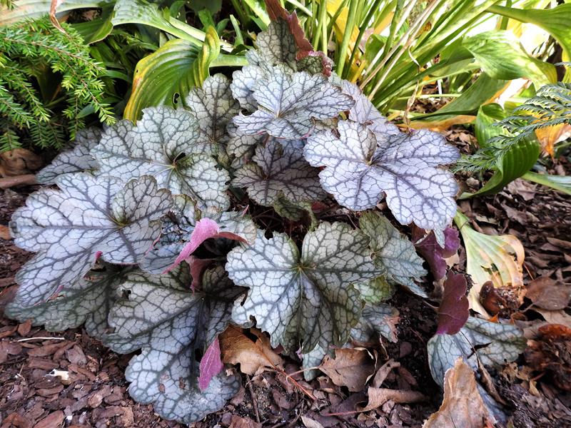 Wysokość: około 20cm Liść: srebrny z ciemnymi żyłkami Zalecane stanowisko: półcieniste do słonecznego Mrozoodporność: polecana do uprawy w strefach 4-9
