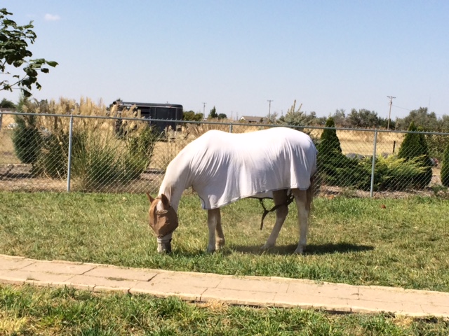 Biedak jest zamkniety na padoku kolo stajni, bo tam nie ma trawy. Zreszta niezbyt chetny do chodzenia. Jutro jade po bele siana. Wet postraszyl mnie, ze w powaznym stanie musialabym go uspic, wiec wole zeby sie tydzien przemeczyc i zeby mu sie polepszylo.