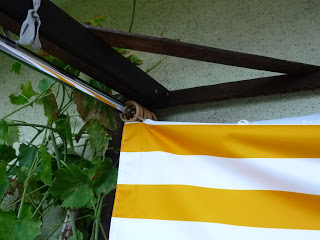 Ważne jest żeby odstępy pomiędzy belkami pergoli były równe. Wtedy zwinięta pergotenda nie zwisa (tak jak u mnie niestety)