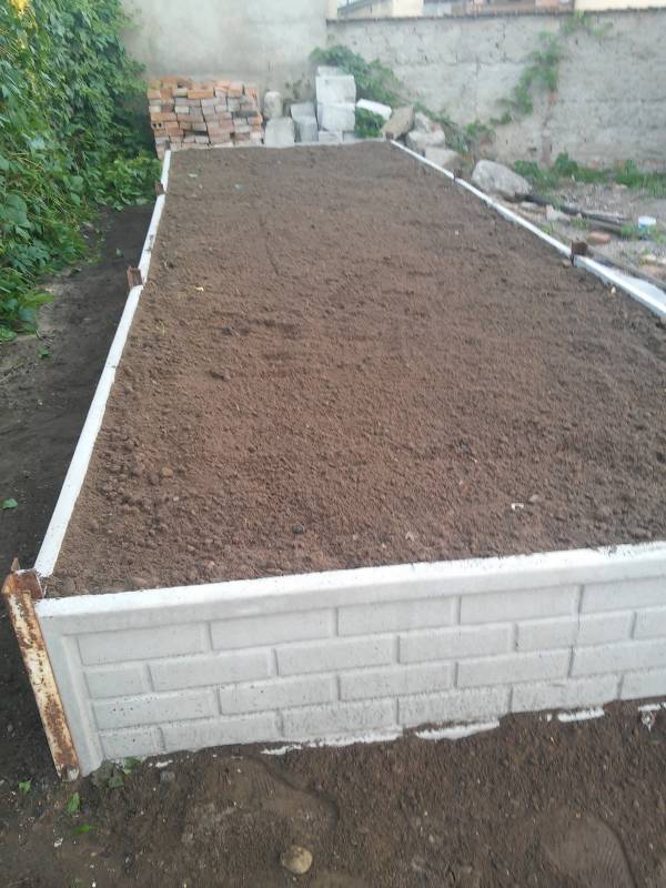 Na zdjęciu widać w rogu wystający wąż. Postanowiłam zrobić full opcję i każdy warzywnik będzie miał swoje nawadnianie. Przewód nawadniający poprowadzony jest pod krawężnikiem i będzie w ziemi podpięty do sieci nawadniania.