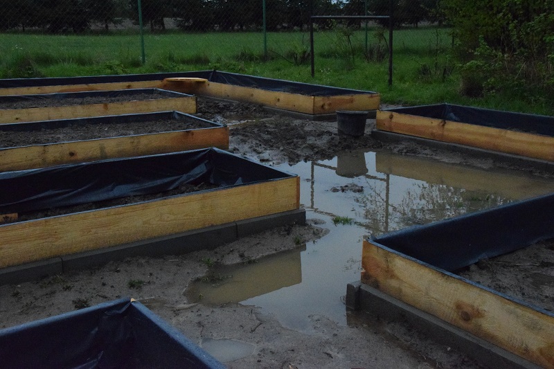 Tak warzywnik wygląda po wiosennych deszczach. Jedynym pocieszeniem jest to, że kałuże nie przekraczają poziomu krawężnika.