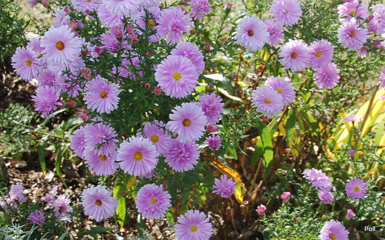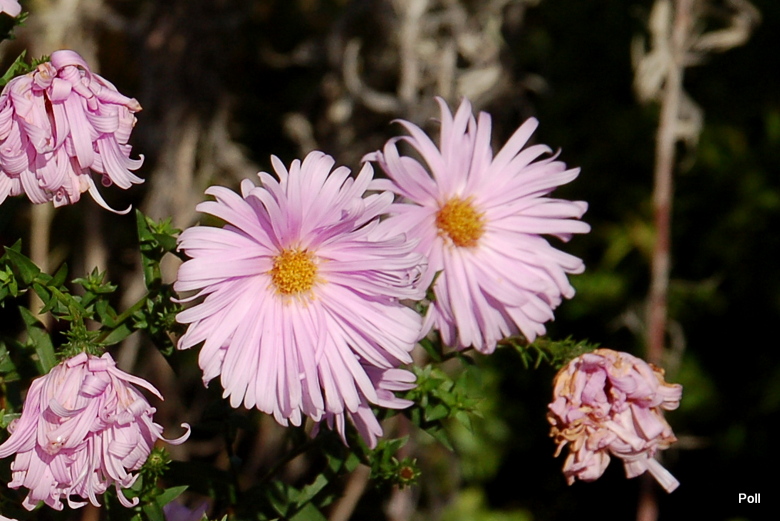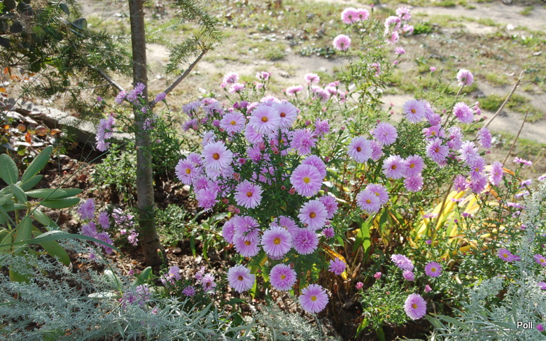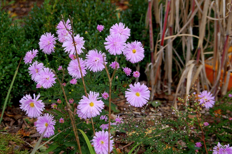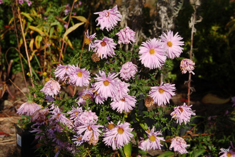 Gdy rozwija kwiaty, sprawia wrażenie krzaczka obsypanego jasnoróżowymi pomponikami. W miarę ich rozwijania, ukazuje się zółty środek, ale kwiaty pozostają na tyle masywne i ciężkie, że łodygi czasem potrafią się pokładac- zwłaszcza po deszczu. Podobno w ostatniej fazie kwitnienia staje się takim przeciętnym astrem, co widac na fotce w pierwszym poście.