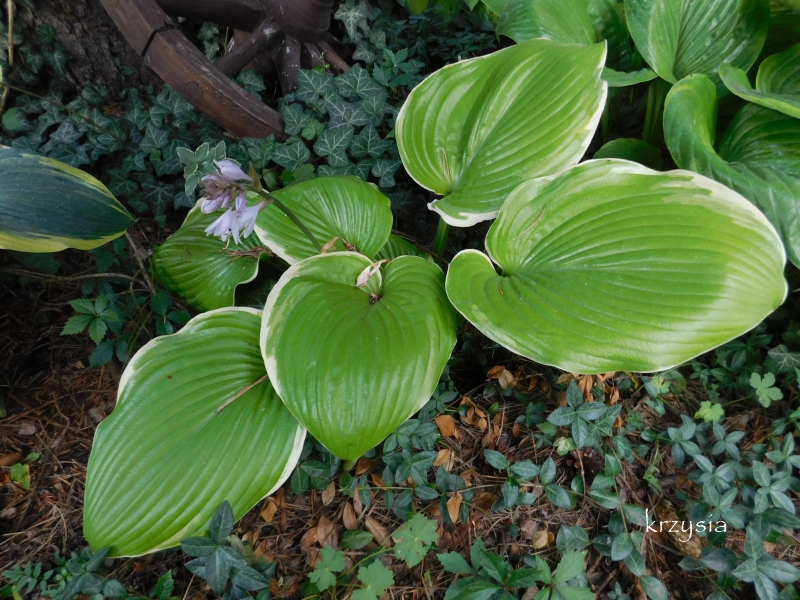 Drugi egzemplarz tej hosty trafił właśnie na mocniej cienistą część działki, wraz z innymi hostami pochodzacymi od Sum and Substance. Nie mam więc fotek, ale bedę mogła porównywać , jak rozwijają się w nieco odmiennych warunkach.