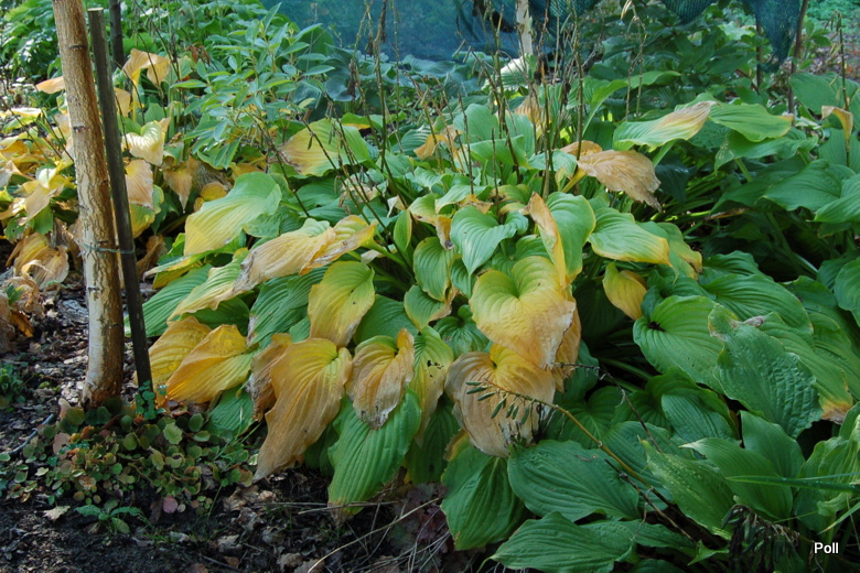 Moje hosty fortunei Albopicta rosną w cieniu pod lasem liściastym. Słońce dociera tutaj wieczorem, po godz. 18. Ziemia gliniasto-próchnicza.