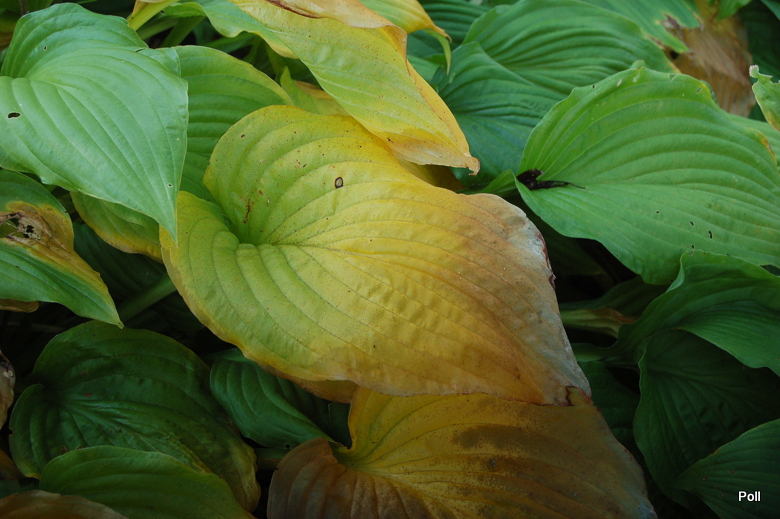 - Na starszych liściach margines smugami wchodzi w centrum liścia.