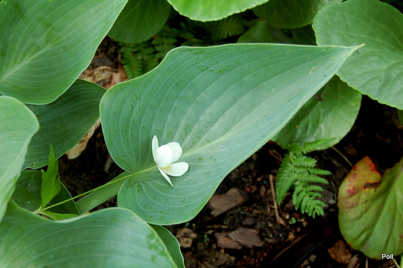 Pięknie pofalowana hosta Joy Ride rośnie na pólcienistym stanowisku, ale wiosną jest ono słoneczne. Dlatego też, niemal co rok jest podmrażana przez wiosenne przymrozki i to zazwyczaj już nie w fazie kłów a rozwijających się liści. W tym roku takie nieprzyjemności zostały jej oszczędzone, Zimna Zośka pognała gdzieś daleko.