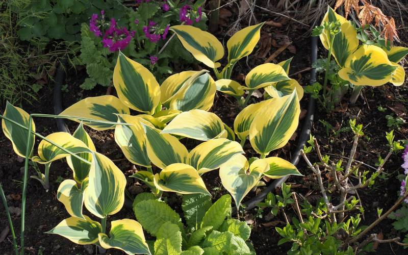 Ben Vernooij wiosna został podzielony na pół i jedna część powędrowała do nowego ogrodu... żółty kieł również odzieliłam niestety na razie wygląda na to, że nie przeżył tej operacji...