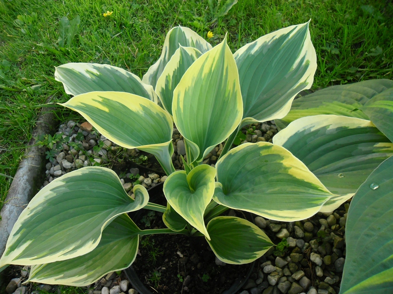 - widoczna z daleka , przyciągająca wzrok, piękna hosta . Im starszy egzemplarz tym szerszy margines na liściu.