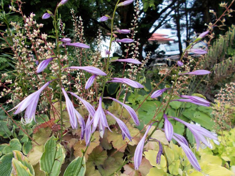 Moja spalona przez słońce , jakie było w czerwcu ,marnie teraz wygląda . A wcześniej na liściach i kilkunastu innych hostach i kloniku w tym miejscu wystąpiła jakaś choroba grzybowa i z 20 host miało małe okrągłe grzybowe plamki . Ale teraz kwitnie i kwiatki faktycznie delikatne