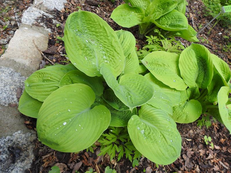 Rozmiar M wysokość 45-50cm Liście prawie okrągłe, wiosną jasno-żółte, zielenieją w ciągu sezonu. Kwiaty blado lawendowe /VI-VII/ i prawie okrągłych liściach. Zalecane stanowisko: półcieniste /toleruje większe nasłonecznienie/