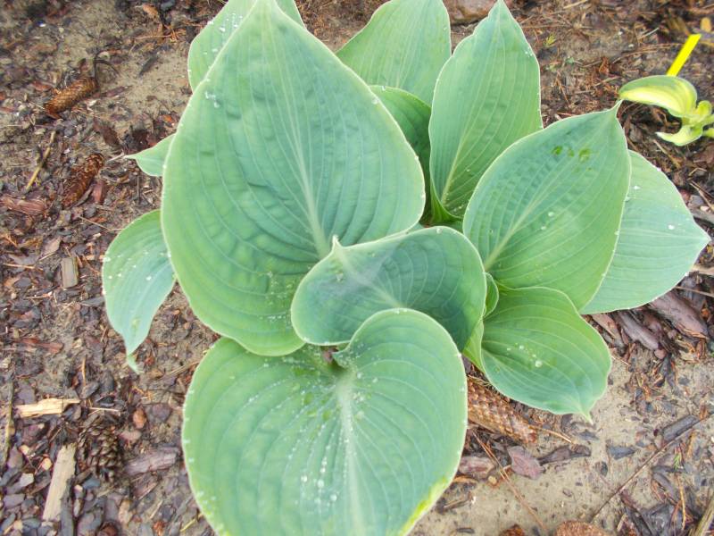 Wielkość: 80 -90 cm Liście: grube i lekko faliste , wiosną niebieskie i pokryte pudrem , później błyszczące z metalicznym połyskiem Kwiaty:- jasno lawendowe Wzrost: średni Stanowisko: cień , półcień