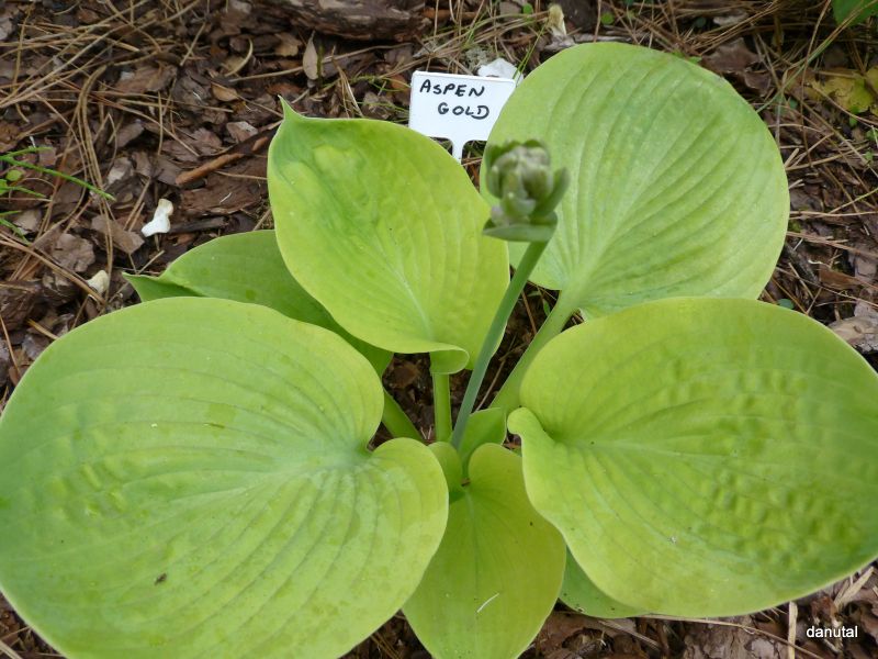 Na jasnych stanowiskach z dostępem do rozproszonych promieni słonecznych, hosta Aspen Gold miejscami pięknie się wybarwia na złoty kolor
