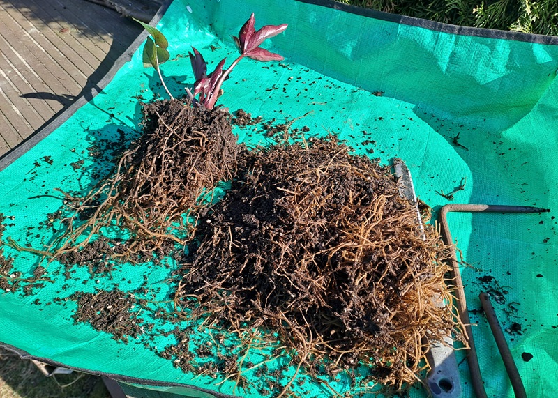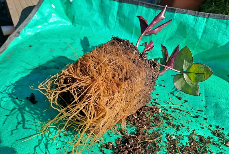 Z wielkim trudem wydobyłam go z małej doniczki i pokazała się bryła korzeniowa...