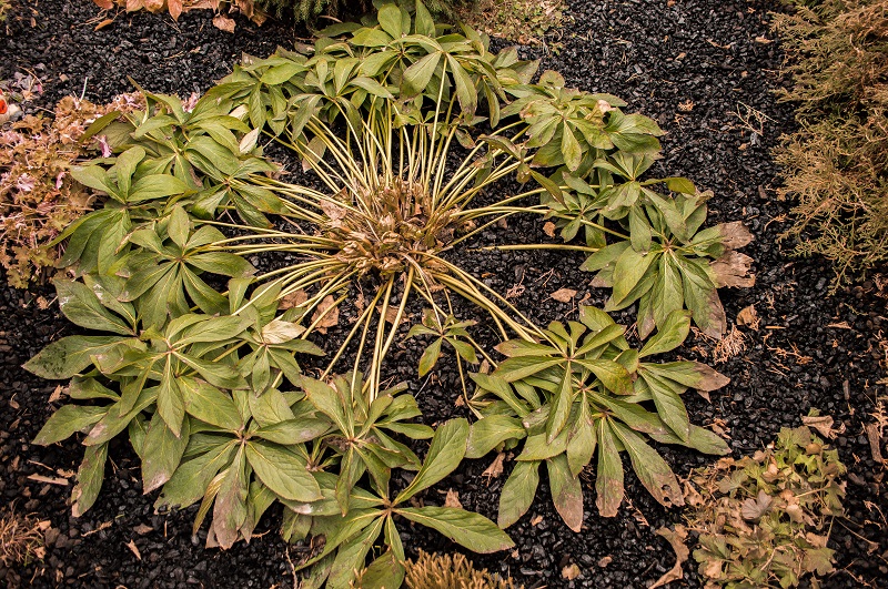 Jeden pęd ciemiernika tybetańskiego jeszcze żyje.