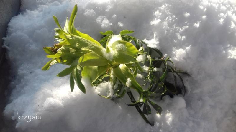 Beata, nie mam w tej chwili zdjęcia, źle go obciapałam w tamtym roku, więc nie ma kwiatów, ale u mnie w Warszawie zimuje bez przykrycia. W tym roku widziałam jedna łodyżka mu uschła, ale ogólnie jest dobrze. Ten jeden ciemiernik (korsykański) jest u mnie od trzech lat z sadzonki „internetowej”. Inne sobie w międzyczasie „poszły”.