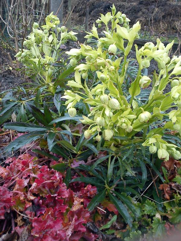 - Helleborus x sahinii: Helleborus niger x Helleborus foetidus