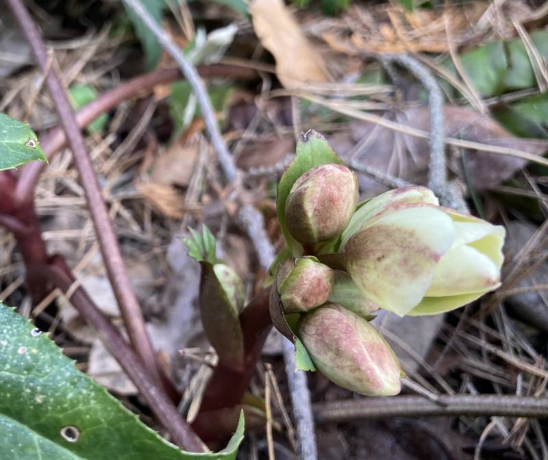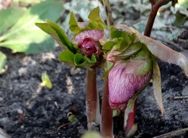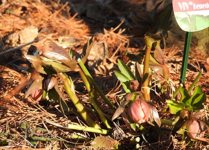 Helleborus x 'VIV Nova' pokazał pierwsze pąki kwiatowe w drugim roku uprawy.