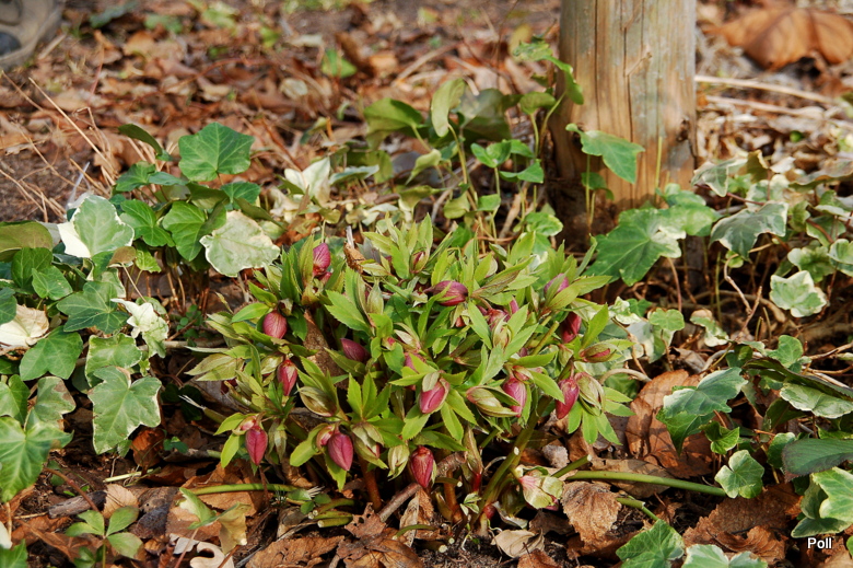 Chciałabym wam pokazać jeden z takich ciemierników.W porównaniu z rosnącymi obok, jego wiosenny start jest nieco opóźniony, więc to tylko zawiązane pąki