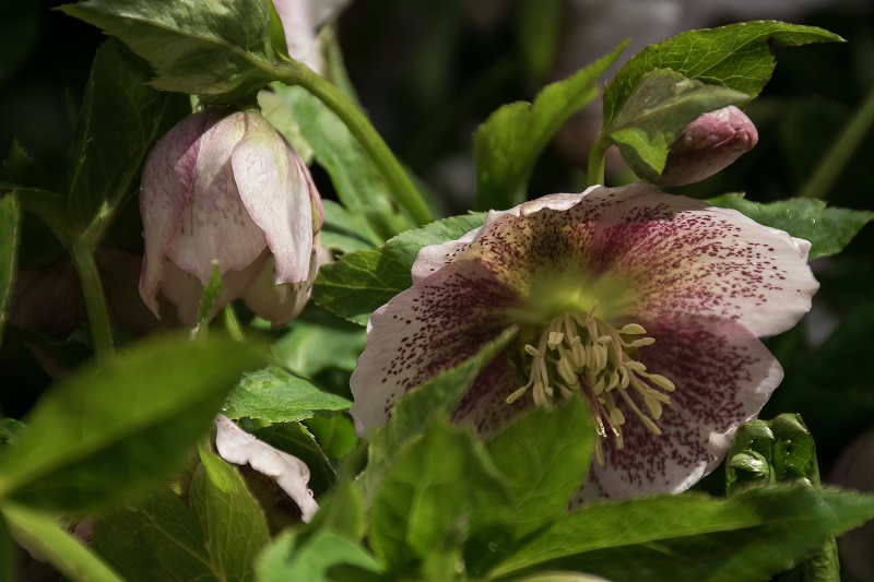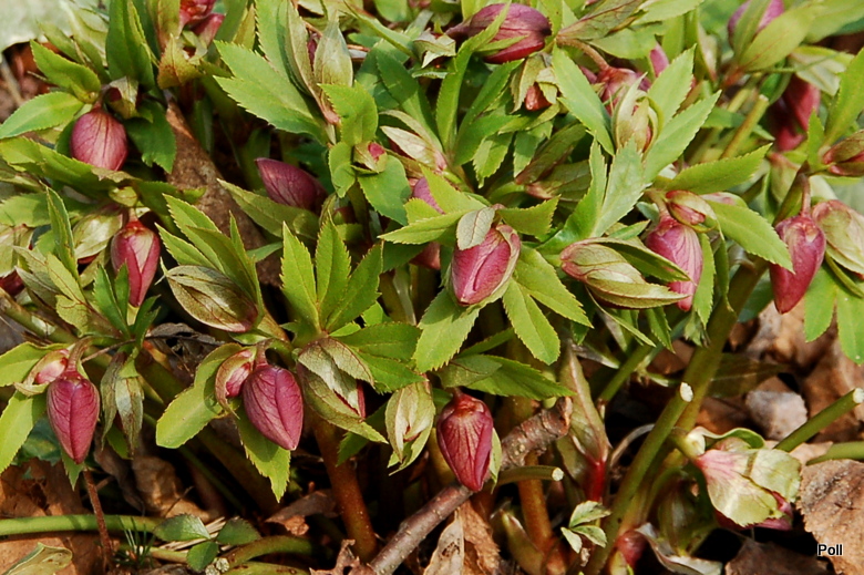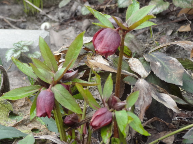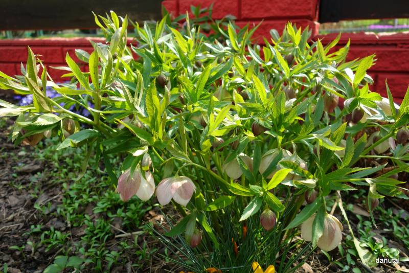 Generalnie powoli idzie rozwijanie paków ciemierników. Noce są bardzo zime, wczoraj było -2C. W dzień niby cierpło, ale zimne wiatry powodują, że odczuwalna temperatura jest sporo niższa, niż te 7C na termometrze.