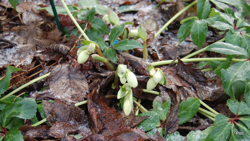 Ciemiernik 'HGC® Ice Breaker® Max' wystawił z ziemi pąki i myślałam, że zakwitnie na święta, ale mrozy zahamowały rozwijanie kwiatów: