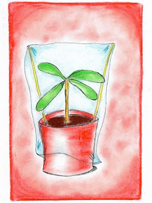 By to osiągnąć, nakrywamy doniczkę kapturkiem z folii w ten sposób, by folia nie dotykała liści lub naczyniem szklanym i ustawiamy w widnym miejscu.
