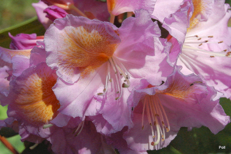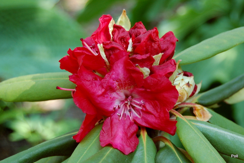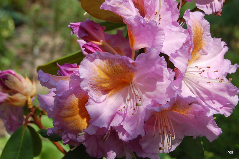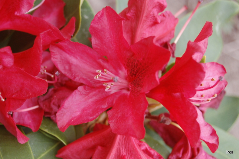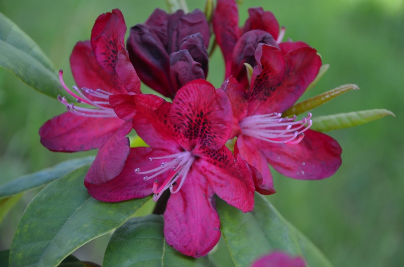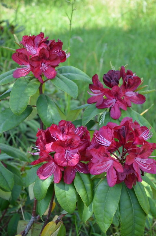 Mam jedno zdjęcie Rh Olin O.Dobbs, ale on juz dawno u mnie przekwitł, jeszcze przed zlotem. Miał tylko 3 grona kwiatów i to nieco zniekształcone, więc nie mogę byc do końca pewna, czy to on. Kolor bardziej jednak pasi, niz w wypadku 'Karl Naue', bo on bardziej krwisty.