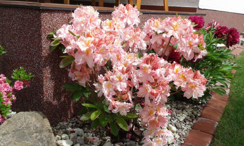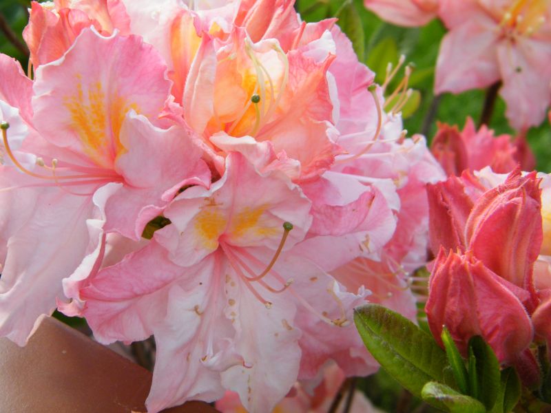 Mam jedno zdjęcie Rh Olin O.Dobbs, ale on juz dawno u mnie przekwitł, jeszcze przed zlotem. Miał tylko 3 grona kwiatów i to nieco zniekształcone, więc nie mogę byc do końca pewna, czy to on. Kolor bardziej jednak pasi, niz w wypadku 'Karl Naue', bo on bardziej krwisty.