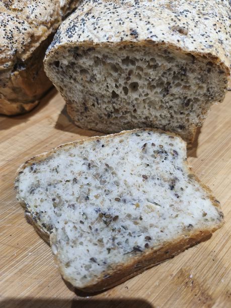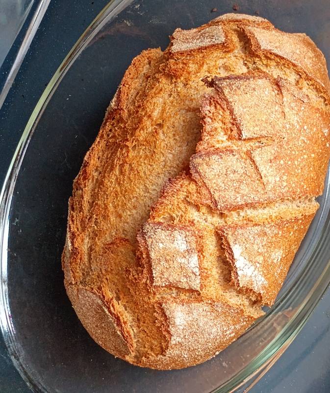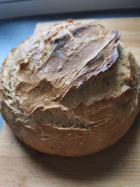 Wszystko za jednym razem do gara, mocno wymieszać, "kluchę" ukształatować ( u mnie bardziej długa bułka niż chleb) na blaszke i do piekarnika góra-dół na 180 stopni- 60min.