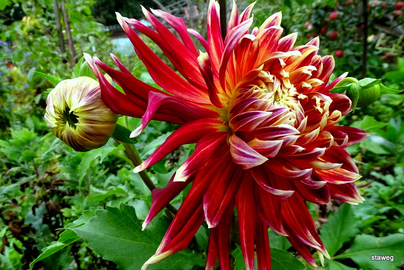 U mnie 'Akta' rozwijała się bardzo powoli. Pierwszy pąk lekko zabarwiony pokazał się na początku września, a dopiero wczoraj (23.IX) nastąpił pełny rozkwit. Wygląda, że to raczej późna dalia. Inne sadzone równocześnie z nią już kończą kwitnienie.