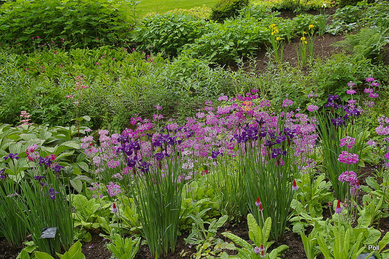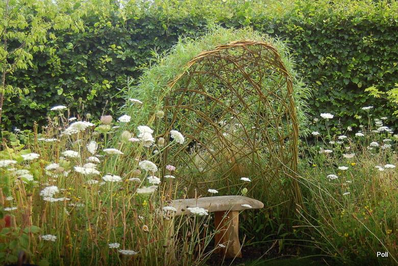 [...] Potok Beck latem jest niewielkim strumieniem, w którego korycie płynie mało wody, ale bywają miesiące, gdy spieniony, rwący nurt podmywa grunt i wylewa się z koryta. Podjęto wiec środki ograniczające ryzyko powodzi m.in zabezpieczono nadrzeczne skarpy wierzbami posadzonymi u podnóża stromych brzegów . Są one uplecione na kształt płotka w stylu 'Basketweave', czyli tradycyjnej techniki ‘willow spilling’. Polega ona na przetykaniu mijankowo (podobnie, jak tkanina) sadzonek wierzby, które korzenią się umacniając grunt. Co sezon wierzby są przycinane, by zbyt nie wybujały i nie zasłaniały innych roślin. Jest to tradycyjny i zarazem bardzo skuteczny sposób zapobiegania erozji gruntu podczas gwałtownych powodzi. Latem wierzby te nie są widoczne, ale na jednym ze zdjęć majowych widać, jak wierzbowe płotki zaczynają się zielenić..