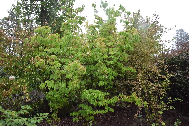 Liście: duże (5-8 cm), ciemnozielone, całobrzegie i lekko wypukłe. Jesienią przebarwiają się na intensywnie czerwono i pomarańczowo.