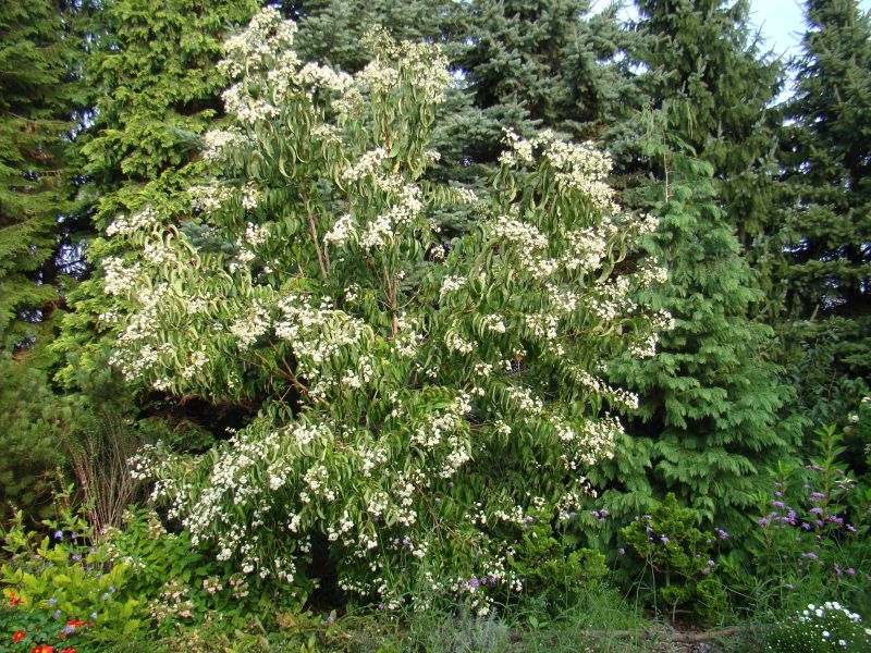 Jeszcze drzewo, bardzo ważne w moim ogrodzie, dziwak z Chin heptacodium, dlaczego dziwak? zakwita we wrzesniu, masa kwiatów oblegana przez pszczoły i motyle....jutro wstawię fotkę.