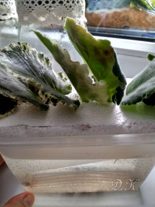 A tutaj listki standardów, część miała korzonki, które wypuściła w wodzie, część zaczęła gnić i obcięłam i wsadziłam do torfu, bez korzeni. Wszystko jest na knocie.