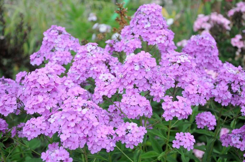 Floks Arendsa 'Hesperis' Phlox x arendsii) na słonecznej rabacie trawiastej (zdjęcie zrobione bez słońca )