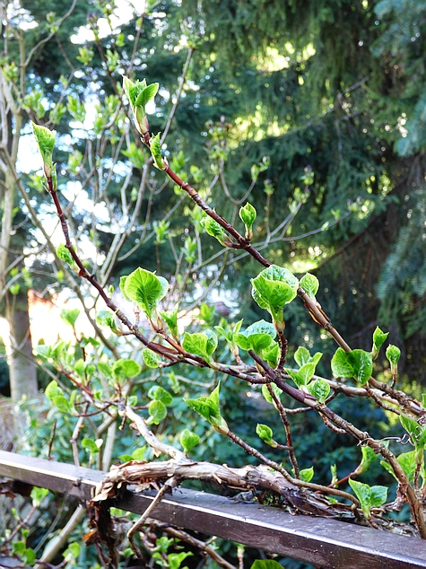 Pędy: pokryte czerwonobrunatną, łuszczącą się korą, lekko pofalowane i przylegające do podpór