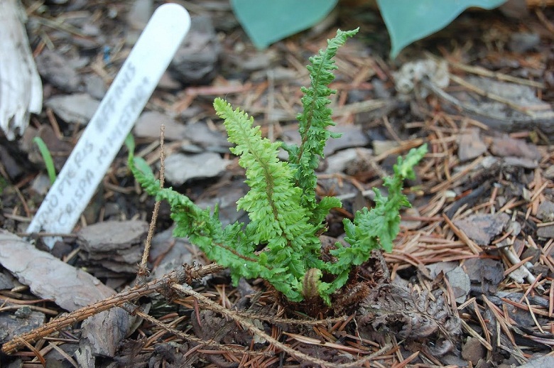 'Crispa Ministar' to - jak można się domyśleć po samej nazwie - najmniejszy kultiwar dobrze nam znanej, mocno rosnącej paproci Dryopteris affinis. Patrząc na nią, ciężko uwierzyć, że ten maluch osiągający około 15 cm wysokości, może być spokrewniony z innymi, dużo większymi paprociami z tego gatunku. Krótkie, ale stosunkowo grube i lekko pierzaste liście rozkładają się mocno na boki, tworząc małą, ale symetryczną rozetę. Jej wzrost jest bardzo powolny a grubość liści pozwala mi snuć domysły, że 'Crispa Ministar' być może jest tetraploidem nerecznicy mocnej? Jak piszę, są to tylko moje domysły, nie poparte wiadomościami ze źródeł.