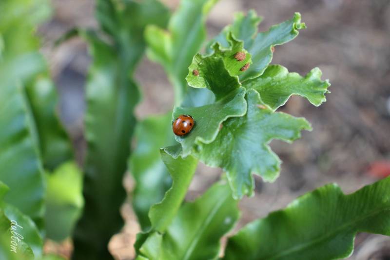 Asplenium scolopendrium 'Ramo-Cristata'. . Na jednym z liści zauważyłem właśnie jakieś narośle, może kryjówki mszyc (coś jak galasy na świerkach)??? Bo jest i biedronka, trochę zaskakujące o tej porze roku.