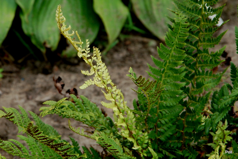 Dwa moje Polystichum aculeatum wypuściły bardzo dziwne frondy- jasnozielone i postrzepione