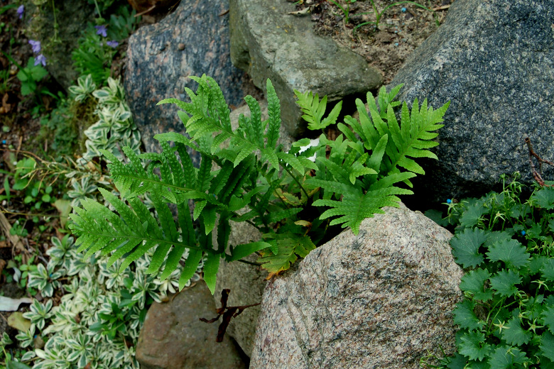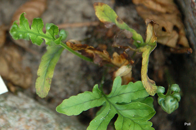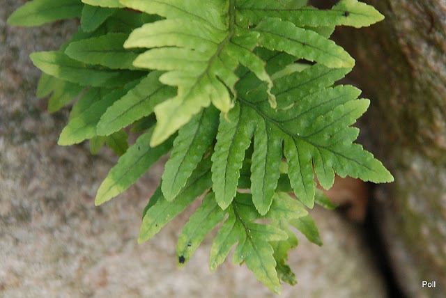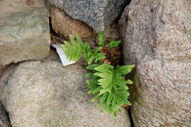 Polypodium vulgare już na poczatku V. Po ukazaniu się nowych liści zaleca się usuwanie starych, 'zimowych' , ale tylko, aby poprawić wygląd rośliny.