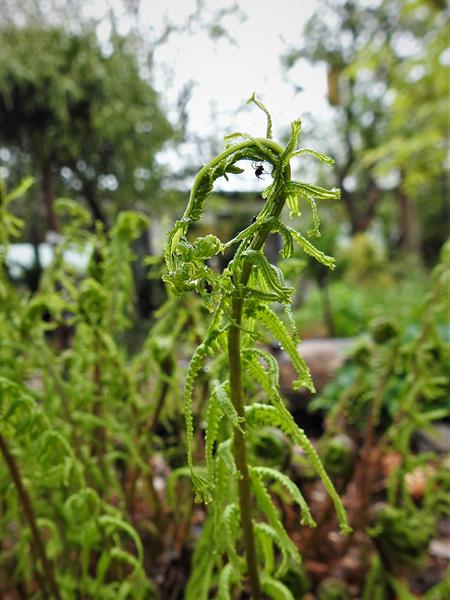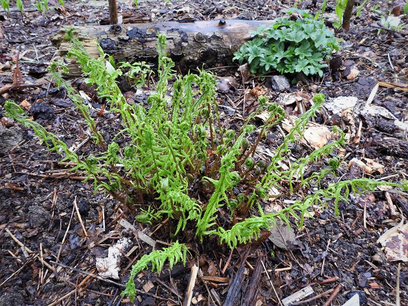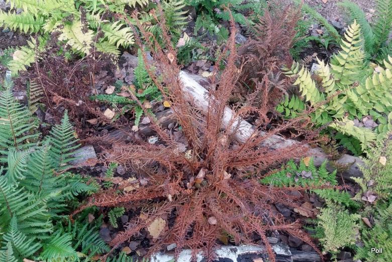 Paprocie tej odmiany, które rosną u mnie (mam ich kilka sztuk), faktycznie wiosną wypuściły dość jasne liście, które teraz, z upływem czasu ciemnieją, także łodyżki przybrały inny, ciemniejszy kolor podbity czerwienią. Być może bardziej dojrzałe będą całkowicie czerwone.