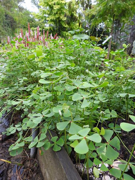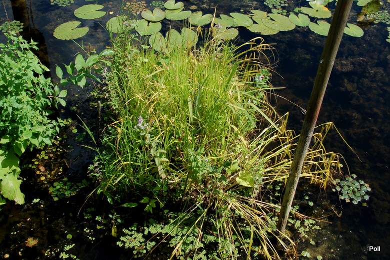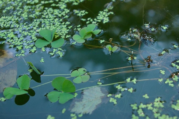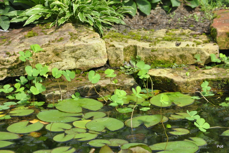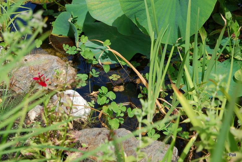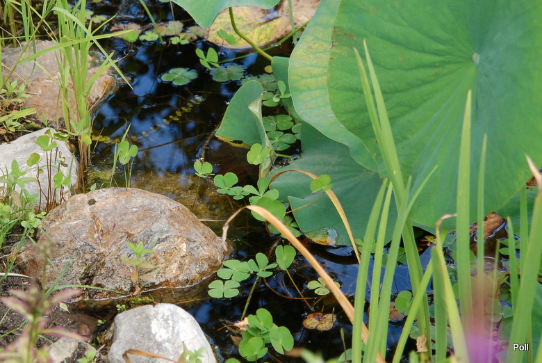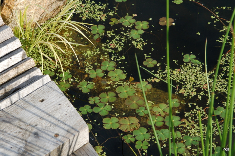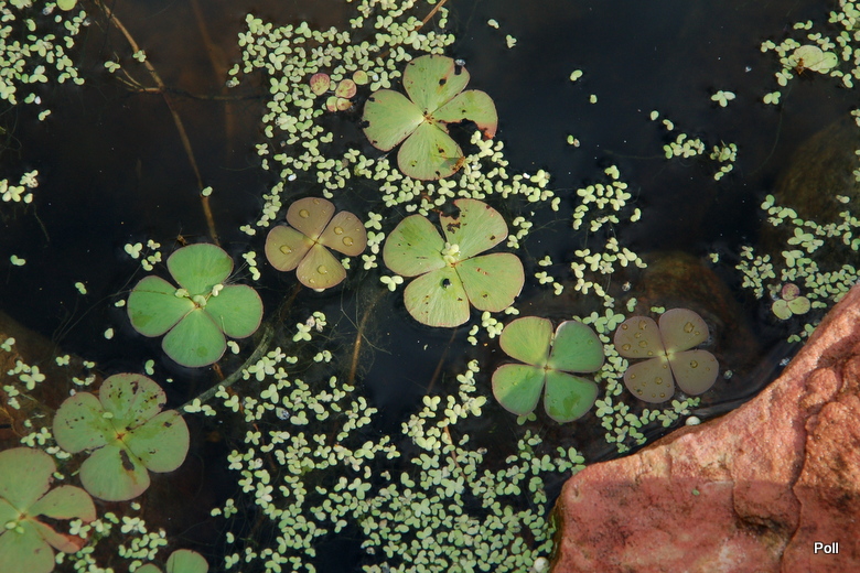 Marsilea quadrifolia rezyduje na słonecznym stanowisku, w specjalnie dla niej zbudowanym bagienku .