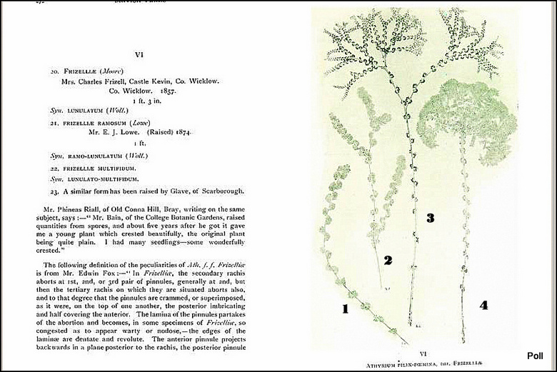 Prócz podstawowej odmiany 'Frizelliae', o której napisał , iż została znaleziona przez pana Charlesa Frizell w Castle Kevin, Wicklow (UK) i nosi synonim 'Lunulatum' ( nr 1), pokazał też 3 inne jej formy:
