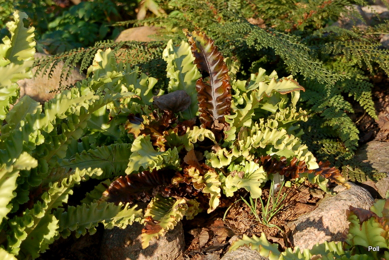 fot.13.11.2016r /po lewej języcznik 'Crispa, po prawej młodszy egzemplarz paprotnika 'Herrenhausen'/