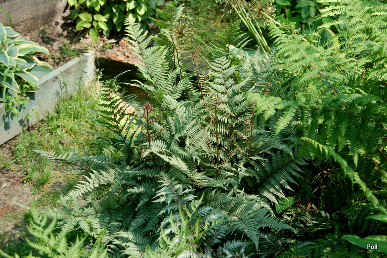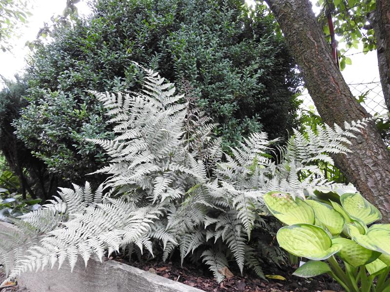 Athyrium filix-femina odziedziczyła wzniesiony pokrój, natomiast srebrzystą barwę liści po