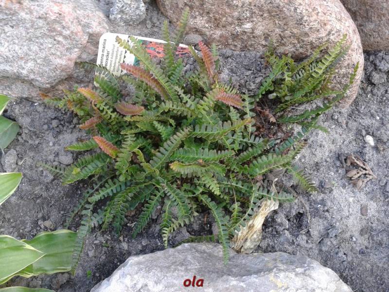 Blechnum penna-marina i choć mój ogród, to głownie piachy, ciężko mi było uprawiać tą paproć i zaliczałam kolejne straty. Dopiero 2 lata temu, po wybudowaniu stoku paprociowego, wysadziłam podrzenie nadmorskie na spadającym w dół miejscu i od tej pory obserwuję, jak dynamicznie rosną. Latem mają sporo wilgoci, zaś zimą, nadmiar wody szybko spływa..