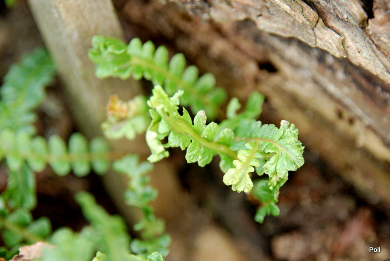 Rozwijające się, 'szczuplejsze' i bardziej kolorowe sporofile na tle ciemniejszych, zielonych i błyszczących trotofili (zdjęcie z początku czerwca)