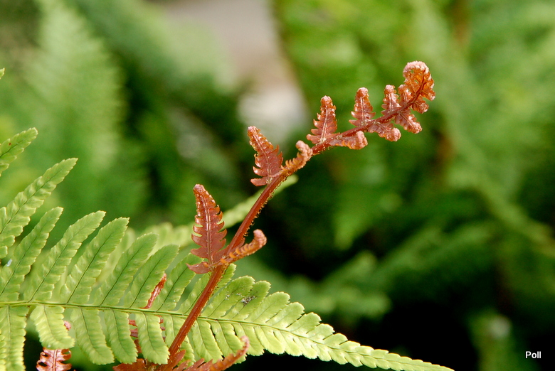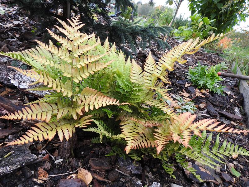 Ciągle pojawiają się rudoczerowne pastorały i rozwiajają się z nich nowe liście. Kapitalna, dynamiczna i zachowująca urok do zimy, paproć