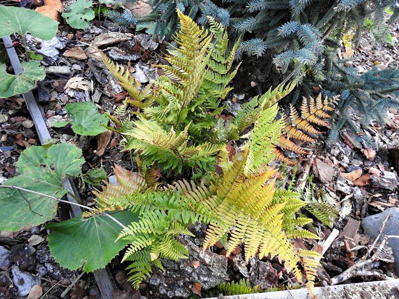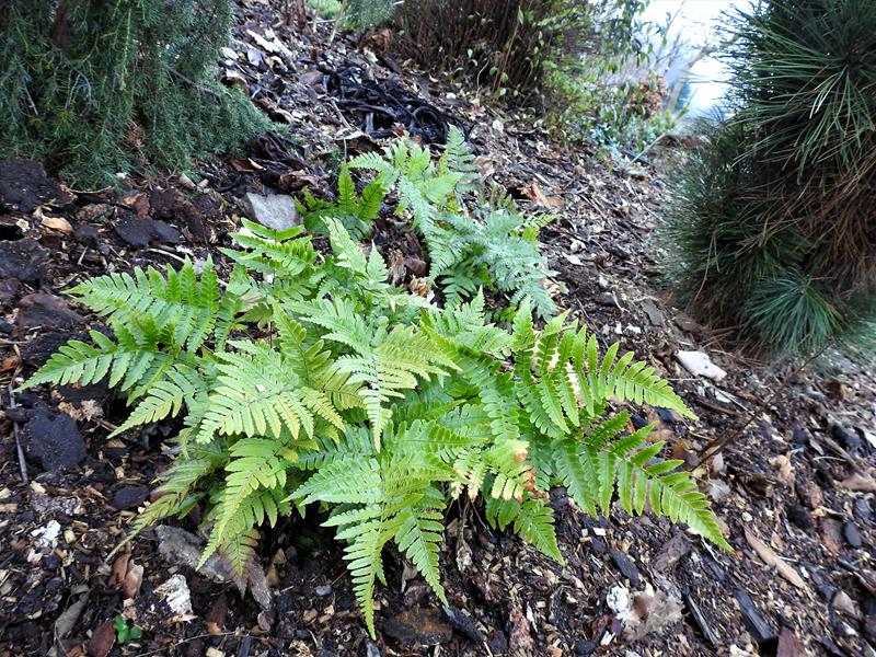 Nerecznice czerwonozawijkowe zimują u mnie w tym roku bez przykrycia i powodują, że ogród jest zielony i o tej ponurej porze roku