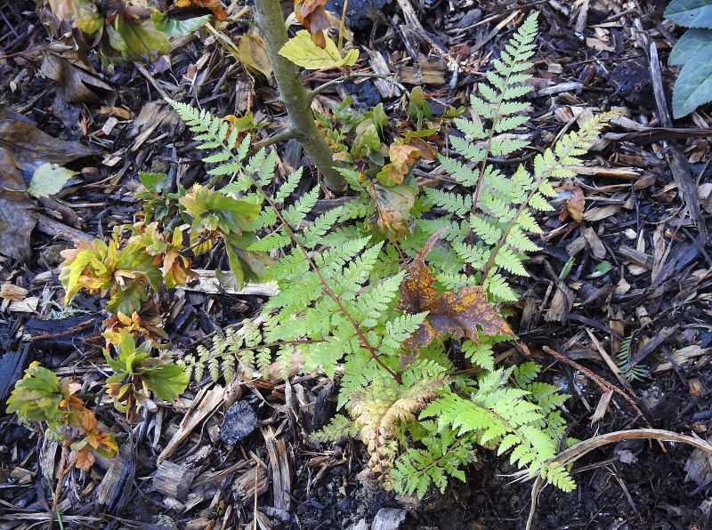 Dwuletnia Athyrium strigillosum pozyskana z rozmnóżki ... po pierwszym, niewielkim przymrozku. Wiosną otrzymała półcieniste, stale wilgotne, ale przepuszczalne stanowisko. Szkoda, że takich miejsc mam coraz mniej w ogrodzie